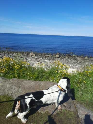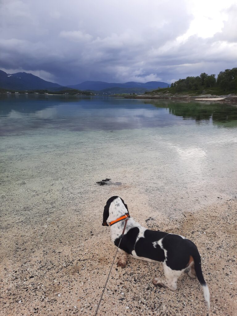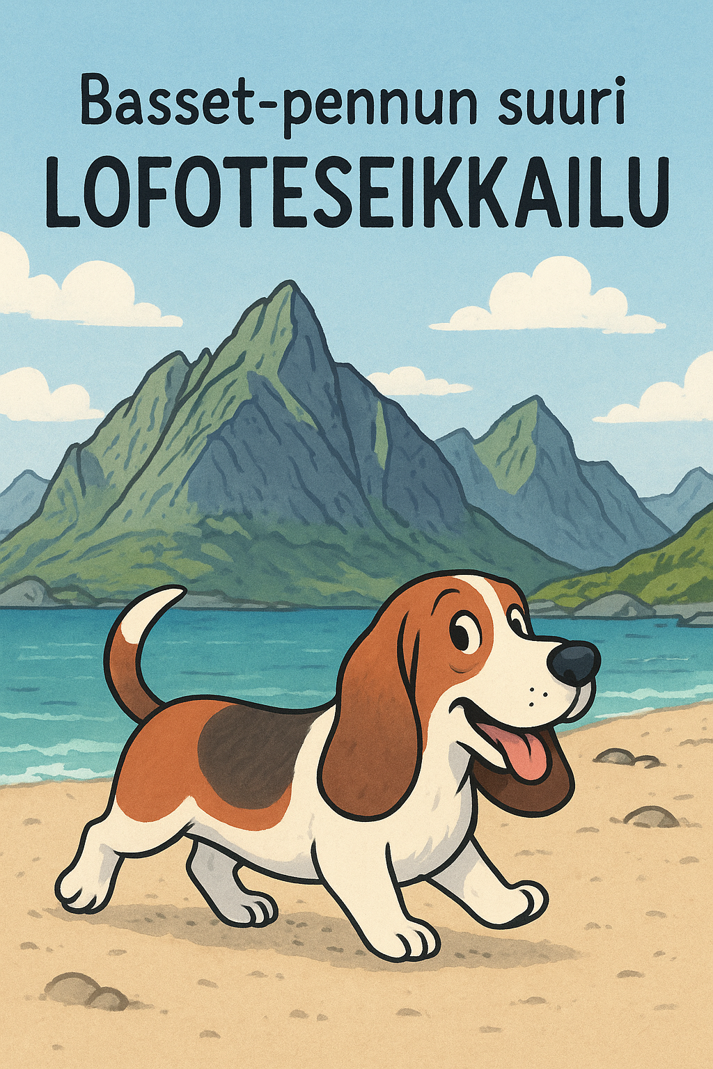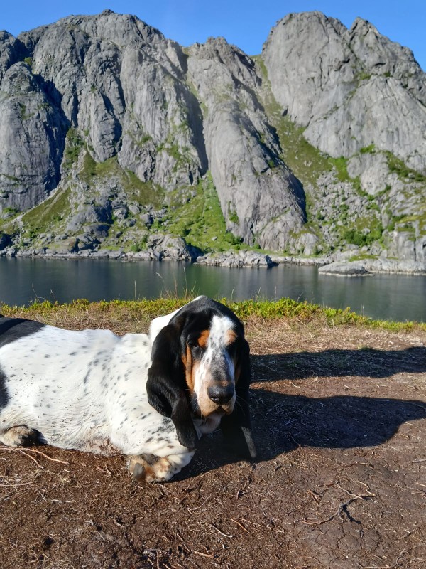Olen Yoshi, basset hound -pentu ja tämä on minun Lofotit, missä vuoret näyttävät valtavilta, meri kirkkaalta kuin kristalli, tuoksut kuin saduista ja tämän kaiken minä saan kokea jo pienenä.