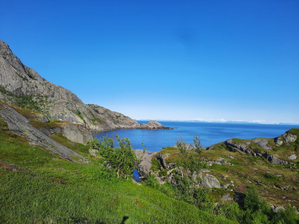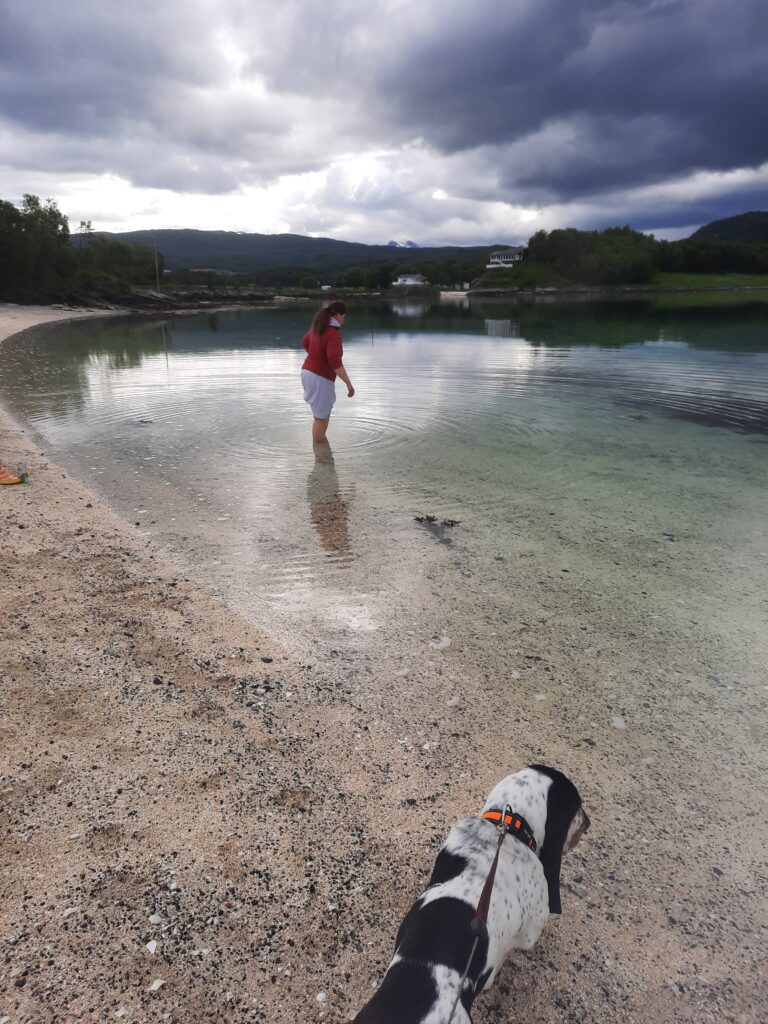 On heinäkuun alku kun saavuimme Lofoteille. Kun hyppäsin autosta Fauskevåg, Gressholma uimarannalle, nenääni hyökkäsi tuhat hajua. Hiekka oli viileää, merivesi maistui suolaiselta (maistoin sen vahingossa… ainakin viisi kertaa) ja rannalla oli jättiläisiä merilevän paloja – täydellisiä salasyötäviä! Juoksin niin lujaa, että korvani läpsyttivät poskia vasten kuin omat taputukset. Varpaat ja korvat kastettu Jäämereen, voimme jatkaa matkaa.