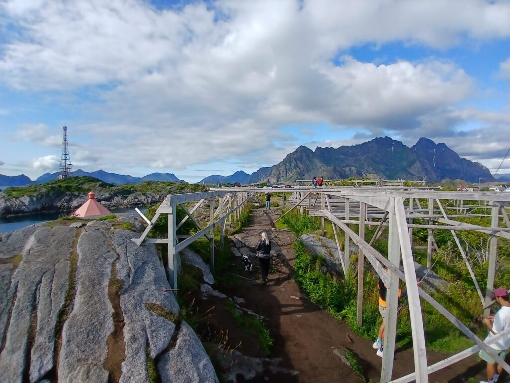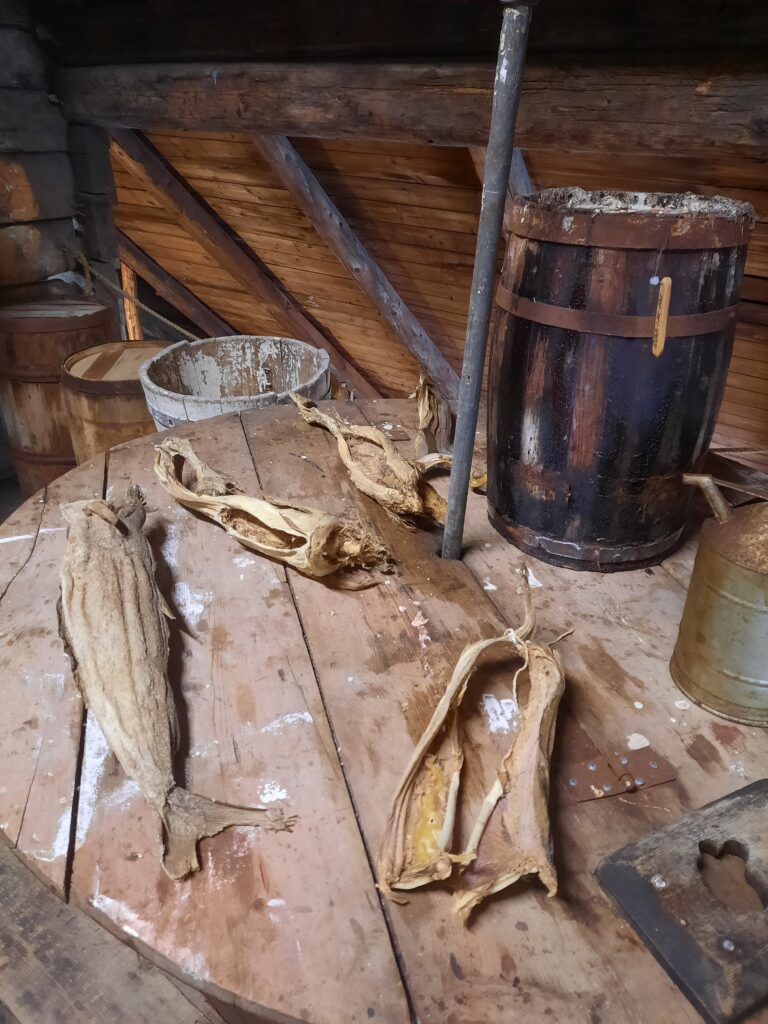 Kun pysähdyimme, maailma tuoksui suolaiselta, savulta ja kalalta. Se on kuulemma turskanpyynnin keskus – täällä on kuivattu kalaa satoja vuosia! Minä tietenkin halusin nuuskia jokaista kuivattua turskaa, mutta eipä niitä ollutkaa. Oli pelkkiä kuivatustelineitä vain silmän kantamattomiin.🐟😋